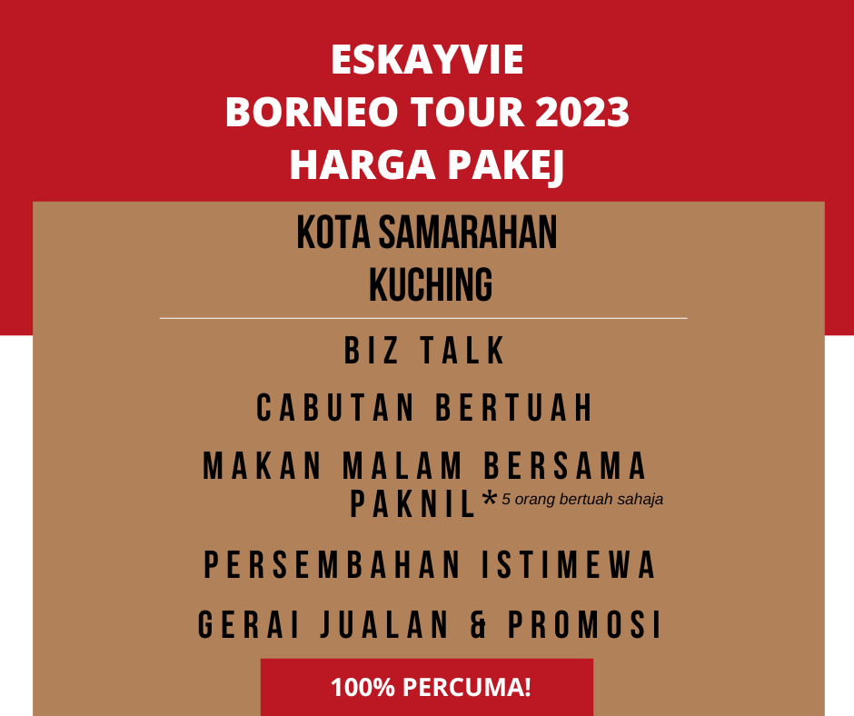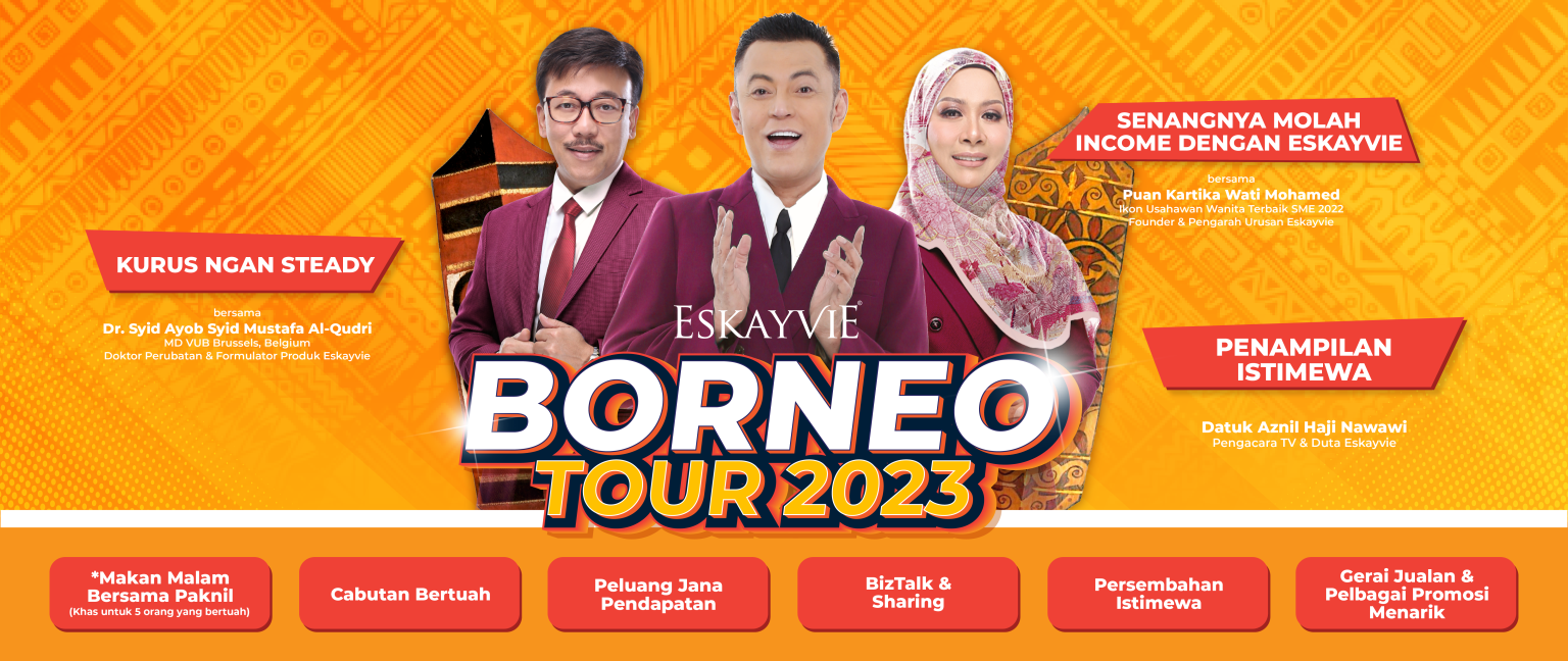Program Eskayvie Borneo Tour ini adalah khas untuk membimbing individu yang mahu mencapai kejayaan secara konsistensi dan efisiensi dalam membuat pilihan. Kejayaan anda juga merupakan hasil daripada beberapa faktor termasuk motivasi, sikap, pengetahuan, ketekunan, kerja keras dan tekad seseorang individu.